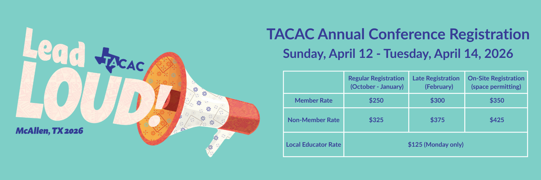 Registration will open on November 1 for members and non-members. Late registration will be from February 6 - March 6, 2026, as space permits. Late registration will require a credit card payment at checkout.